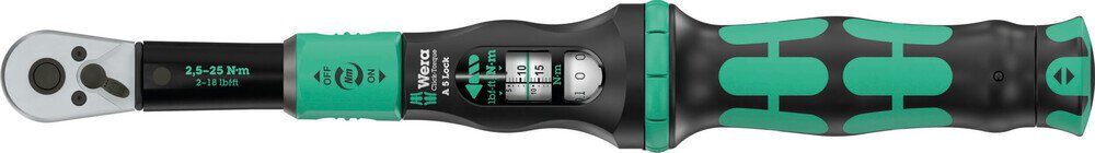 Einstellbarer Drehmomentschlüssel für kontrollierten Rechtsanzug. Mit ¼"-Vierkant-Antrieb. Die Drehmomentfunktion kann deaktiviert werden (Torque Lock Funktion), sodass das Werkzeug auch zum Lösen verwendet werden kann. Einfache Einstellung und Sicherung des Vorgabewertes. Das hör- und fühlbare Einrasten bei Erreichen der Skalenwerte erleichtert zusätzlich die sichere Einstellung des gewünschten Drehmomentwertes. Die robuste Auslösemechanik garantiert ein deutlich hör- und fühlbares Auslösesignal bei Erreichen des eingestellten Drehmomentes. Feinverzahnte Umschaltknarre mit 45 Zähnen. Die Genauigkeit beträgt ±4 % gemäß DIN EN ISO 6789-1:2017-07.