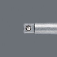 Werkzeugschaft für handbetätigte Steckschlüsseleinsätze. Mit Kugel. Abtrieb: 1/4"-Außenvierkant; 1/2"-Außenvierkant. Antrieb: 1/4"-Sechskant.