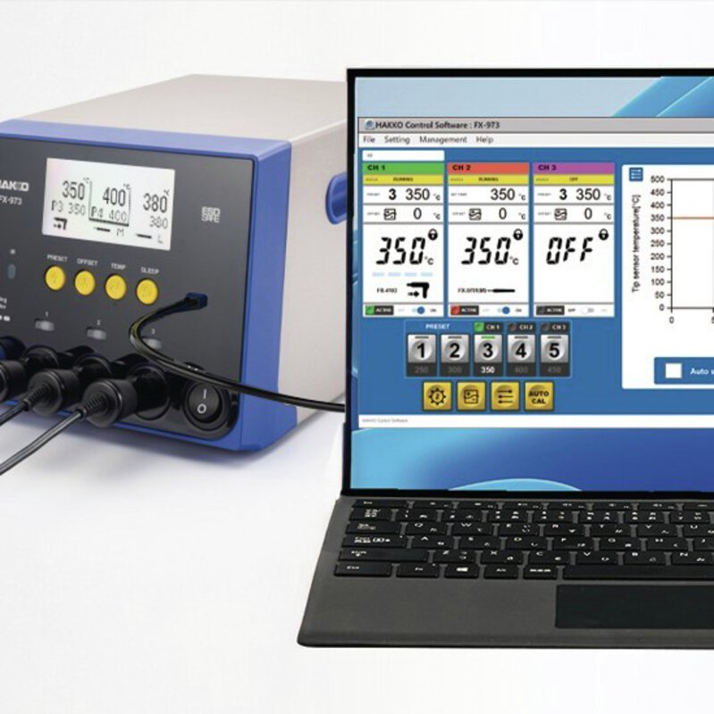 Um den Anforderungen zur Einsparung von Energie zu entsprechen, ist die Lötstation mit einer einstellbaren Auto-Sleep Funktion und einer automatischen Abschaltung nach einer voreingestellten Zeit ausgestattet. Diese Funktionen ermöglicht gleichzeitig eine Erhöhung der Lötspitzen Standzeiten. Die HAKKO FX-973 eignet sich besonders für N2-Lötungen und bietet damit eine professionelle Lösung für oxidationsempfindliche Bauteile. Die präzise Temperaturregelung sorgt für konstante Ergebnisse auch bei anspruchsvollen Rework-Anwendungen.