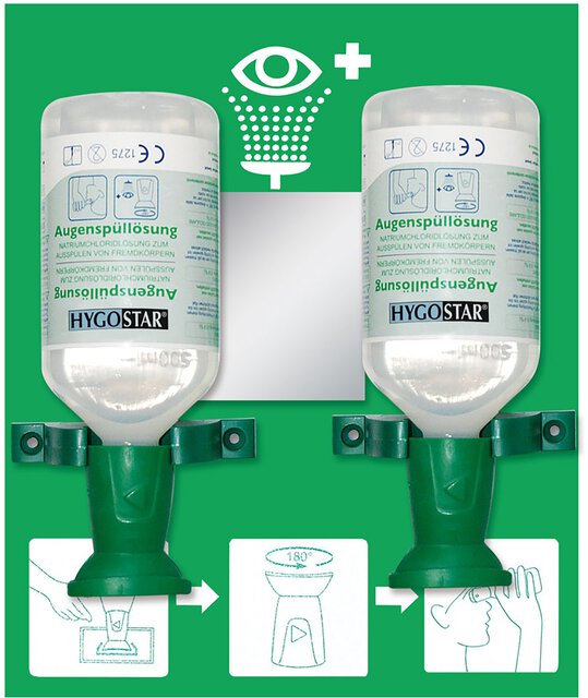 Augenspülstation "single" mit 1 Flasche, 500ml, Wandmontage