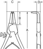 Zangen für Außensicherungsringe mit geraden Backen, verchromt, 3 bis 10 mm