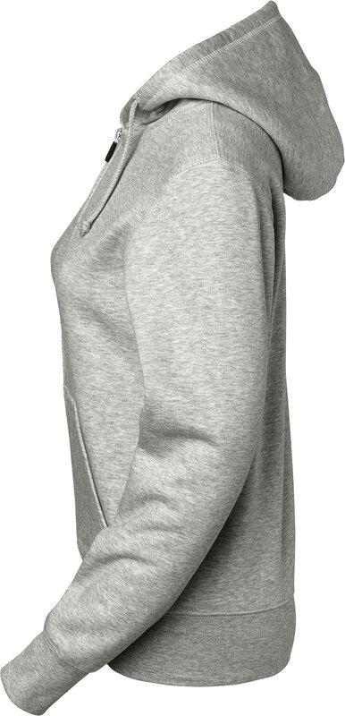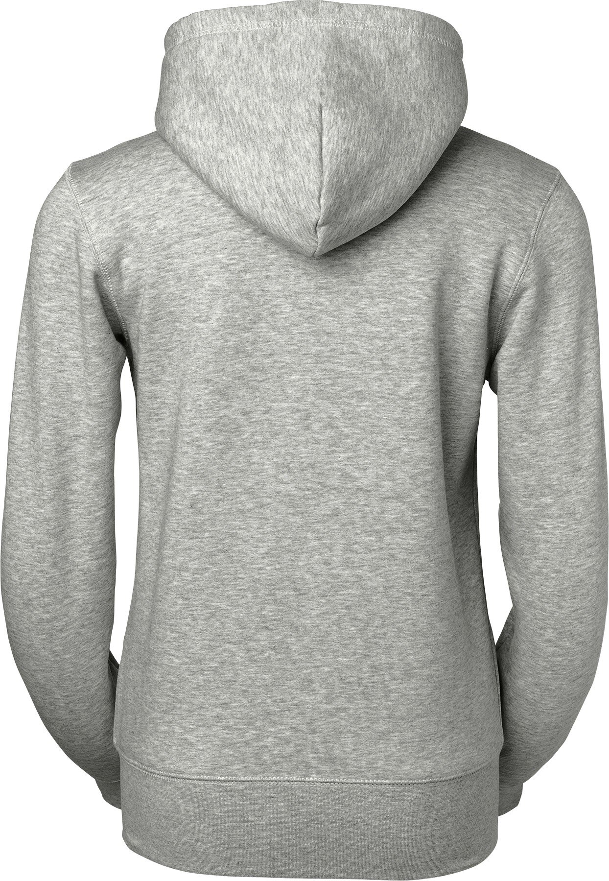 Klassisches Kapuzensweatshirt im Damenschnitt mit doppelter Stoffkapuze und zwei Fronttaschen. Saum und Bündchen aus Stretchmaterial.