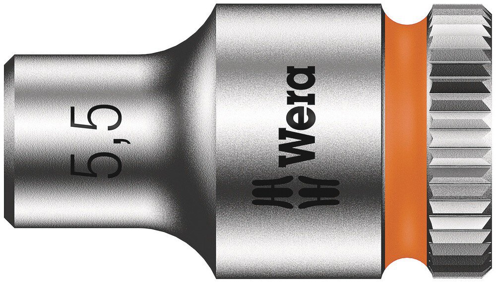 Hand- und Maschinensteckschlüssel-Einsatz (ISO 2725-Teil 3) von Wera ermöglicht einen Einsatz im Hand- und Maschinenbetrieb. Mit Take it easy Werkzeugfinder mit Farbkennzeichnung nach Größen - zum einfachen und schnellen Finden des benötigten Werkzeugs. Griffig zum leichten Greifen auch mit öligen Händen. Mit Kugelfangrille. Für Außensechskantschrauben- und muttern. Aus mattverchromtem Chrom-Vanadium.