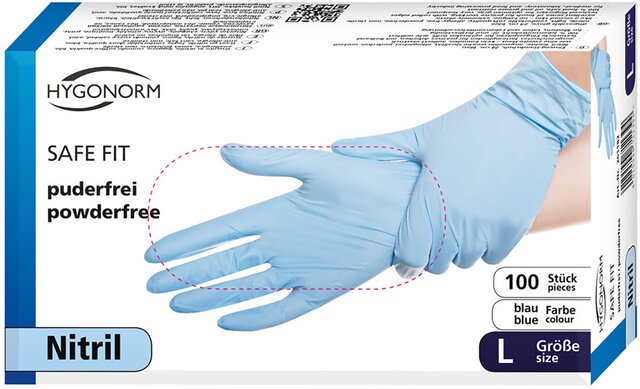 Hygonorm nitrile glove SAFE FIT, blue, powder-free, box of 100
