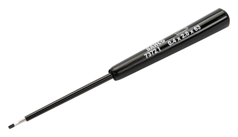 Precision screwdriver for slotted screws with plastic handle, 0.4 mm x 2 mm x 63 mm