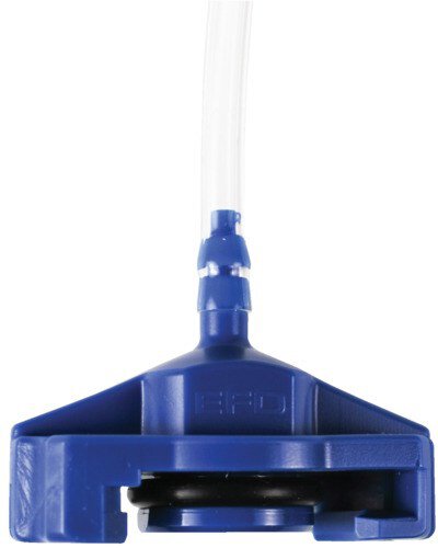 General use lightweight adapters are designed for fast attachment and feature slots that lock securely onto matching tabs on the syringe barrel. Blue molded one-piece, acetal adapter head with NRB O-Ring, flexible polyurethane air hose (5/32" OD x 3/32" ID), male quick-connect and safety clip.
