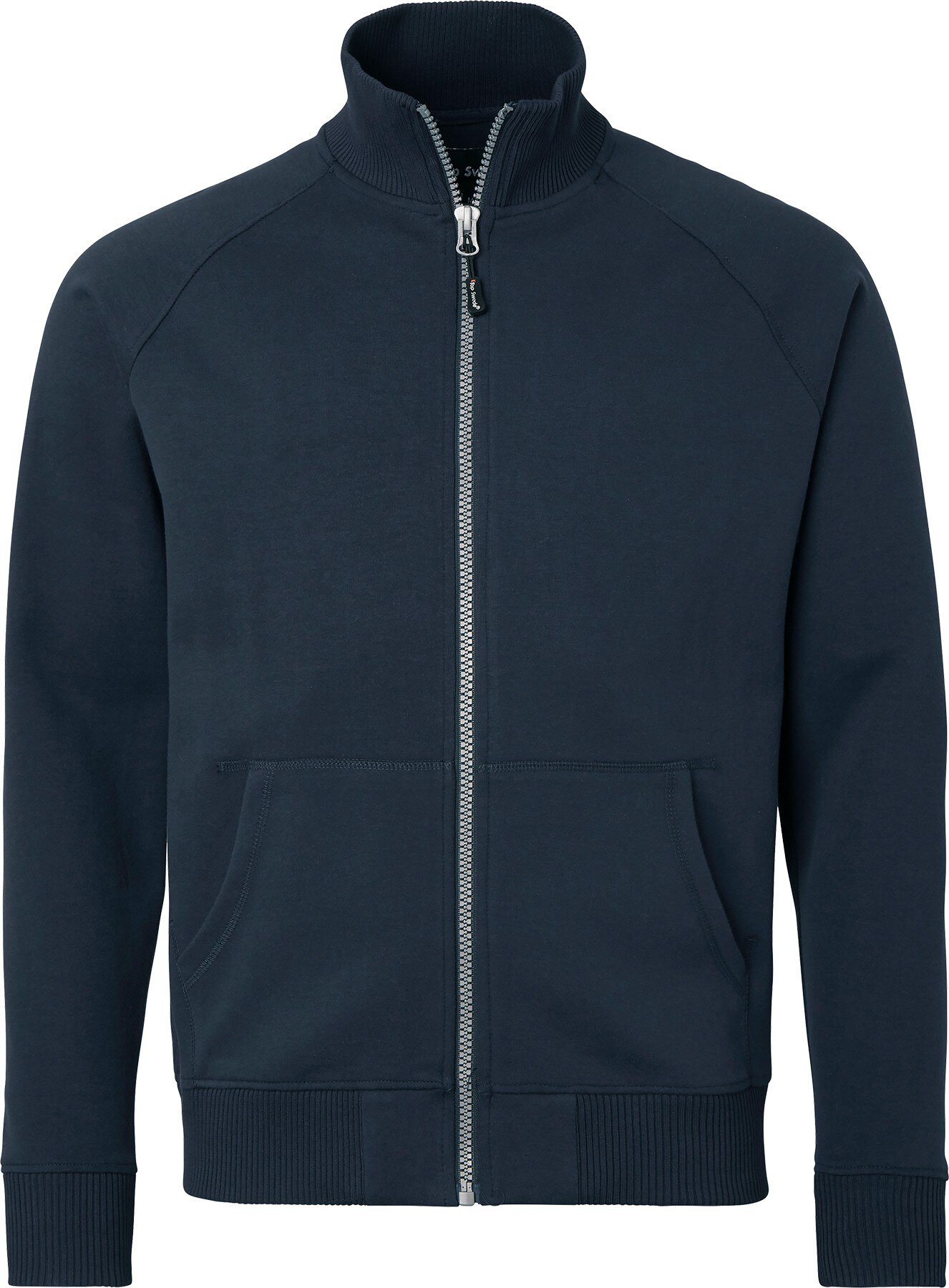 Sweatshirt with a collar and a full zip. Ribbed collar. Two front pockets. Ribbed arm and hem cuffs.