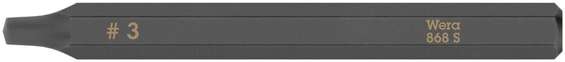 Extra tough bit for square-head screws. This prevents premature breakage of the bit and extends its service life. Suitable for use with Wera impact screwdriver 921. 1/4" hexagon drive.