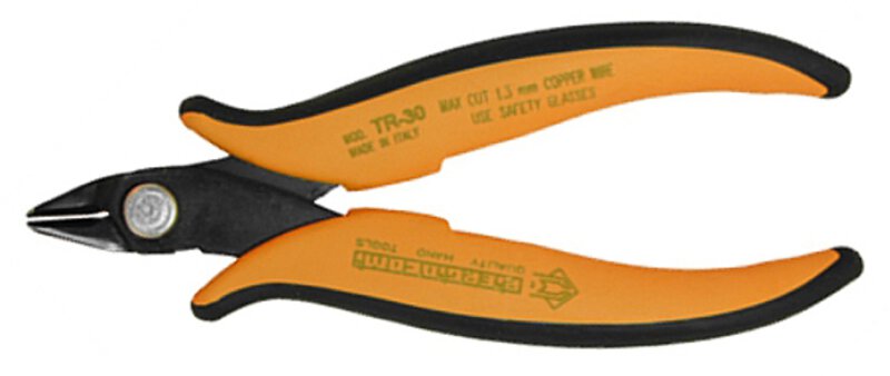 Flush cutter for the cutting of copper wire and other soft mater. Ergonomic bi-material anti slip handles for a better grip. Anti-reflection and anti-oxidation surface treatment (phosphate coating). Steel thickness 3mm.