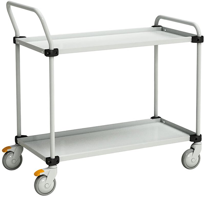The frame of the trolley consists of round, powder-coated steel tubes (25 mm) and four swivel castors (Ø125 mm), 2 of which have brakes (ESD).