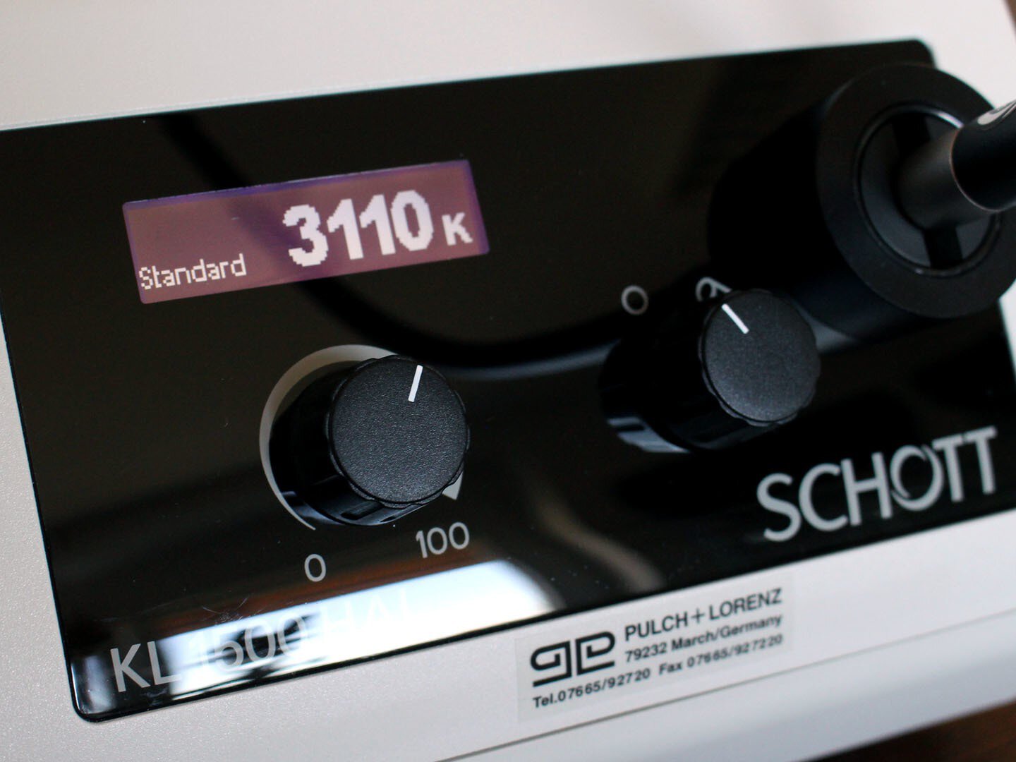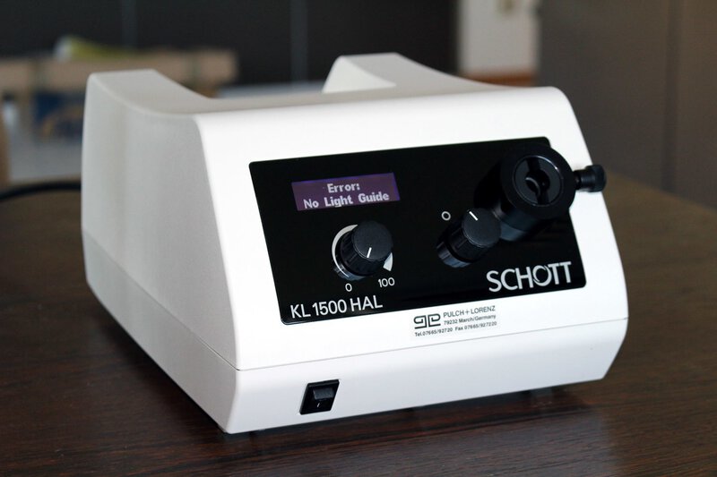 The Schott KL 1500 HAL is the successor to the Schott KL 1500 LCD. Like its predecessor, it is a 150 watt halogen cold light source with a light flux of 600 lumen and a color rendering index (CRI) of almost 100.