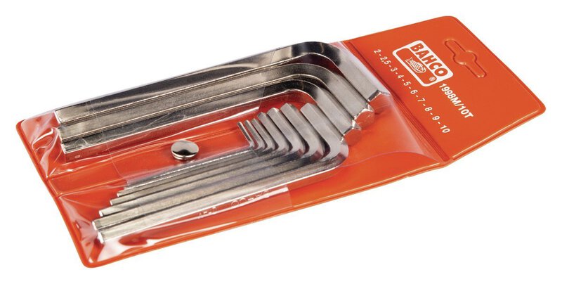 Metric hexagon socket key set, nickel-plated, 2 to 10 mm, 10 pieces