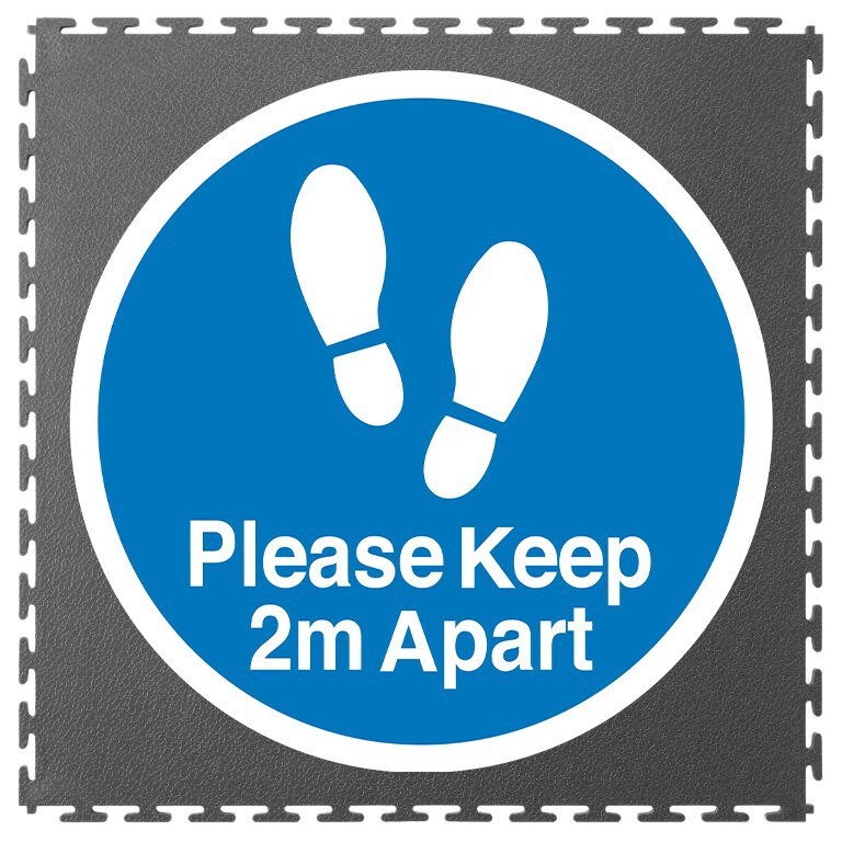 Floor marking tile "Keep a distance of 2 meters", T-Lock, blue/grey, 500 x 500 x 7 mm, 1 piece