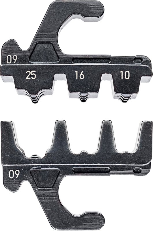 Only one tool for the most common crimping applications. Quick and easy changing of crimp dies without additional tools. Safe and protected storage of the interchangeable dies in a round magazine. Comfortable, powerful crimping pliers in professional quality. Reliable crimping results as with permanently mounted crimp dies. Consistently high crimp quality due to precision inserts and positive lock (can be unlocked). - Application: for wire end ferrules - Capacity square millimetres: 10.0 / 16.0 / 25.0mm² - AWG: 7 / 5 / 3
