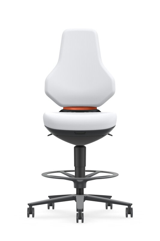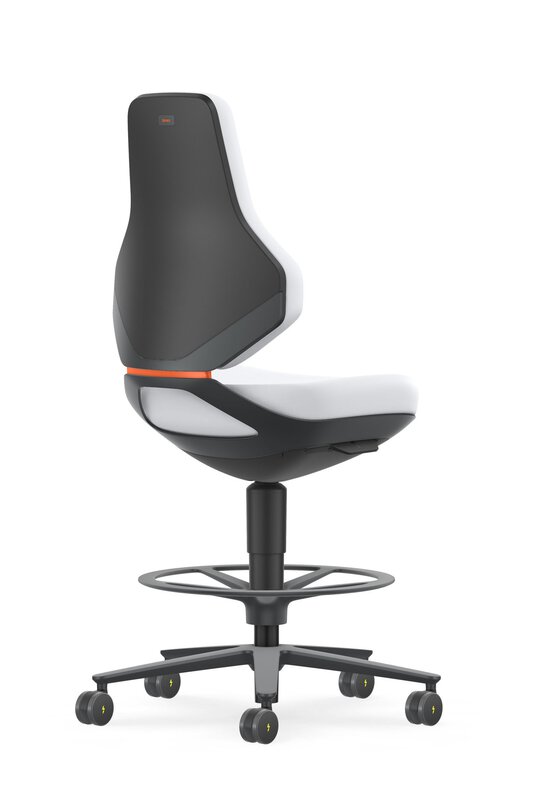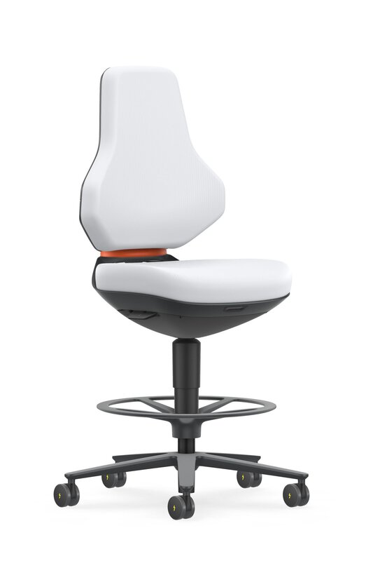 ESD TEXON 4 industrial swivel chair, with seat-stop castors and foot ring, Skintec white