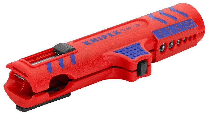 The universal stripping tool, 125 mm, SB packaging from KNIPEX impresses with its precise workmanship and high functionality. Developed for professional applications, this tool enables effortless and clean stripping of a wide variety of conductors and strands. Suitable for stripping and stripping all standard round and damp-proof cables from Ø 8.0 to 13.0 mm (e.g. NYM cable 3 x 1.5 mm² to 5 x 2.5 mm²) Also suitable for use in junction or distribution boxes Double-shell, hinged stripping tool With opening spring and ratchet Fastening clip for safe storage The robust design and ergonomic shape ensure comfortable handling and a long service life. An indispensable tool for electricians, technicians and anyone who wants to carry out precise and efficient work in the field of cable processing.