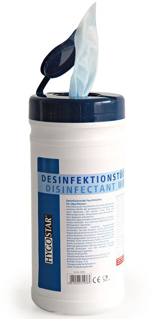 HygoClean lingettes désinfectantes 20x20cm, bleu, teneur en COV 9% IPA, 200 pièces par distributeur