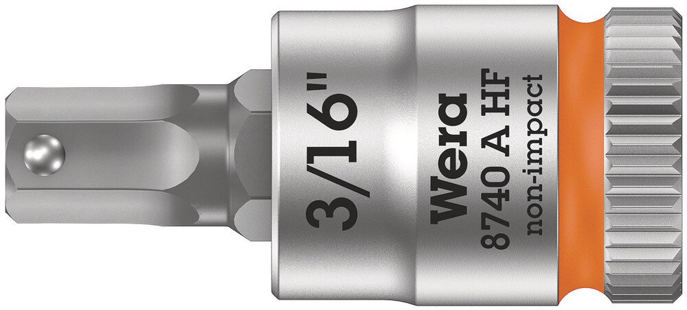 Noix d'embout à emmanchement 1/4", avec fonction de retenue pour vis à six pans creux, 3/16" x 28 mm