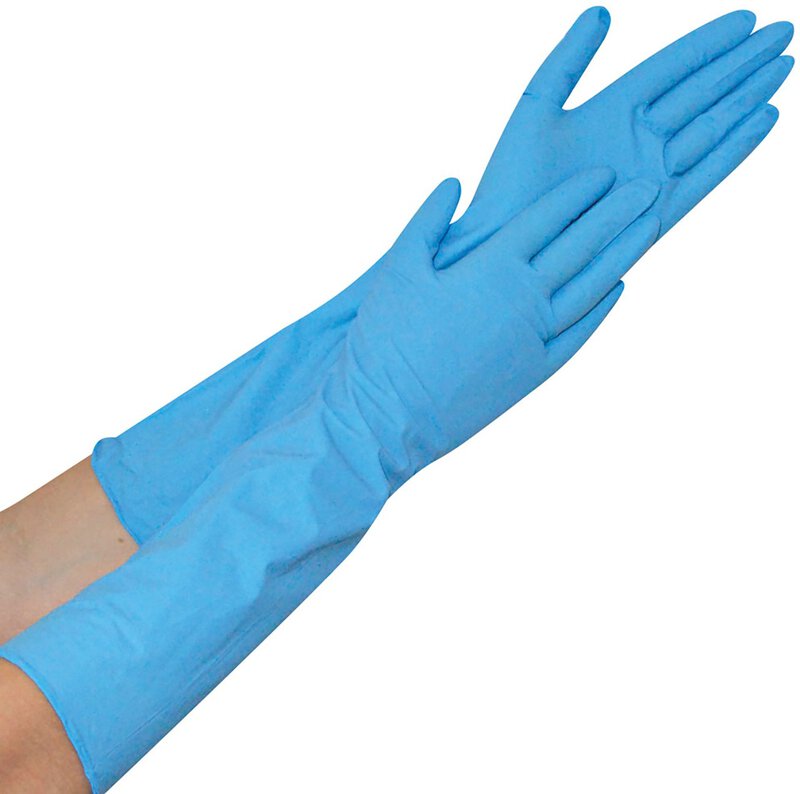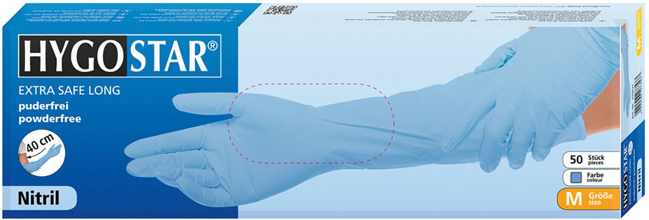 Guanto in nitrile Hygostar EXTRA SAFE SUPERLONG, blu, taglia M, 40 cm, senza polvere