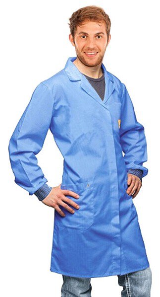 Camice di lavoro ESD, unisex, chiusura a scatto da 3 mm, blu, lunghezza 3/4, M