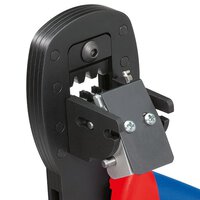 Guida a ganasce a crimpare parallele per soddisfare i requisiti particolarmente elevati dei connettori di piccole dimensioni. Per collegamenti elettrici senza saldatura. Qualità di crimpatura costantemente elevata grazie agli inserti di precisione e al cricchetto (sbloccabile). Con ausilio di posizionamento montato per connettori miniaturizzati D-Sub per il posizionamento esatto del connettore e del cavo. La pressione di crimpatura viene impostata con precisione (calibrata) in fabbrica. Amplificazione della forza tramite leva a ginocchiera per lavorare senza fatica. Pinze a crimpare per altri connettori miniaturizzati come HD 22, Modu IV, Micro Timer, ... su richiesta. Acciaio elettrico al cromo vanadio in qualità speciale, temperato ad olio