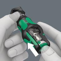 Molti utenti vogliono essere in grado di eseguire operazioni di avvitamento più velocemente senza compromessi. Con un cacciavite preciso, che permette anche un potente avvitamento finale e che è anche molto più veloce di un cacciavite convenzionale. Un ingranaggio planetario commutabile è la soluzione: Integrato nell'impugnatura del cacciavite, aumenta significativamente la velocità di lavoro, specialmente con le filettature metriche. Il Kraftform Turbo accelera l'avvitamento in modo puramente meccanico. La funzione turbo può essere attivata o disattivata al tocco di un pulsante. Lo spegnimento è raccomandato per aumentare le coppie o per la regolazione fine e il serraggio o l'allentamento finale di una vite con una coppia elevata.