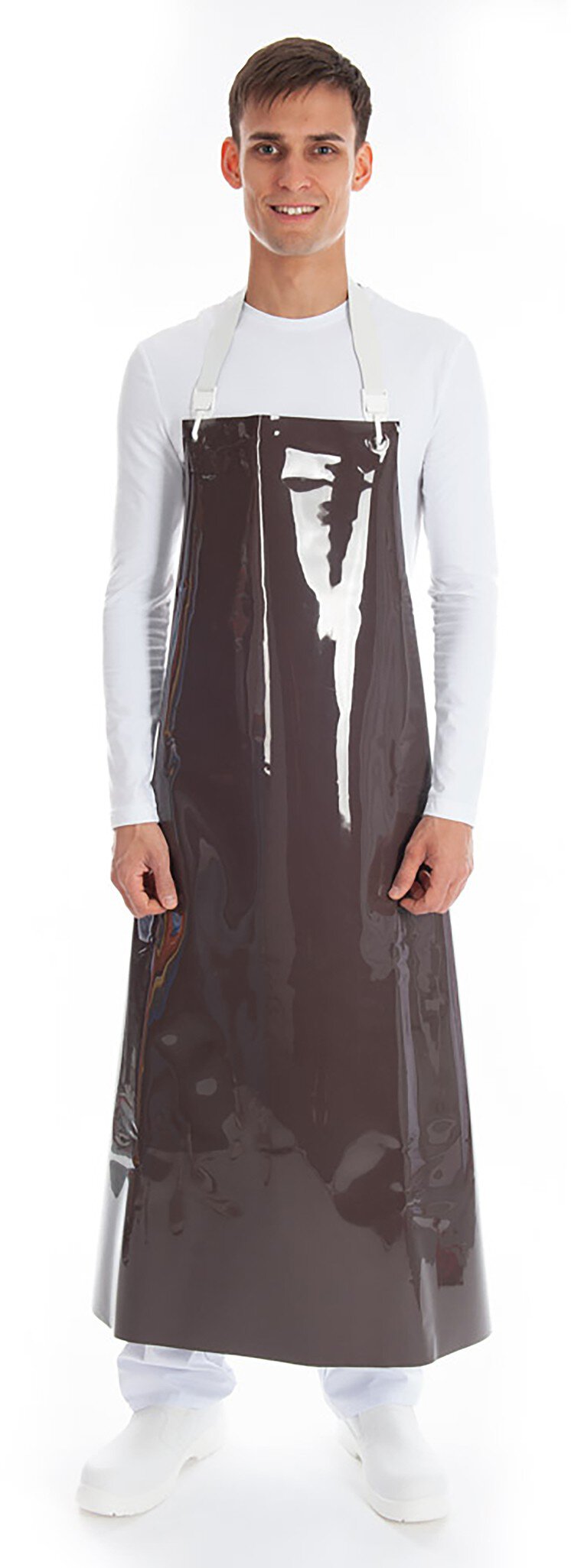 Grembiule Hygostar in PU, marrone, 110x90cm senza inserto in tessuto
