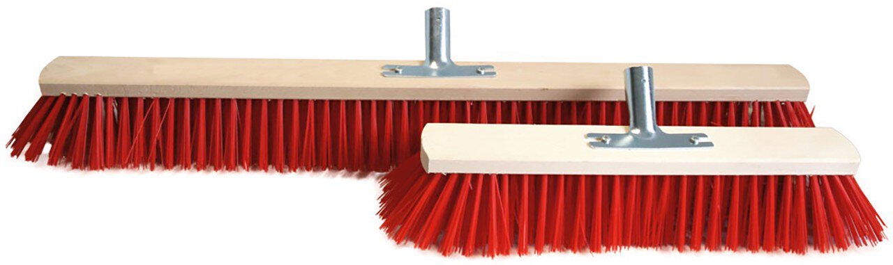 Scopa per corridoi HygoClean, legno, 80 cm, supporto in metallo rosso, imbottitura in elastomero, grezzo, 7 righe