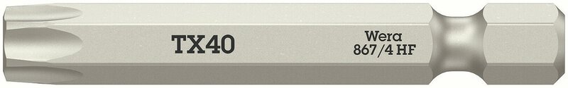 Bit di alta qualità per viti TORX® interne. Gli utensili TORX® HF (HF = holding function) sviluppati da Wera sono caratterizzati da un'ottimizzazione geometrica del profilo TORX® originale. La forza di serraggio risultante dalla pressione superficiale tra la punta dell'utensile e il profilo della vite trattiene saldamente le viti sull'utensile! Adatti anche alle viti Würth ASSY e alle viti Altenloh SPAX T-STAR plus. Trova utensile facile con codifica a colori in base alla dimensione. Esagono da 1/4", adatto ai supporti DIN ISO 1173-F 6.3.