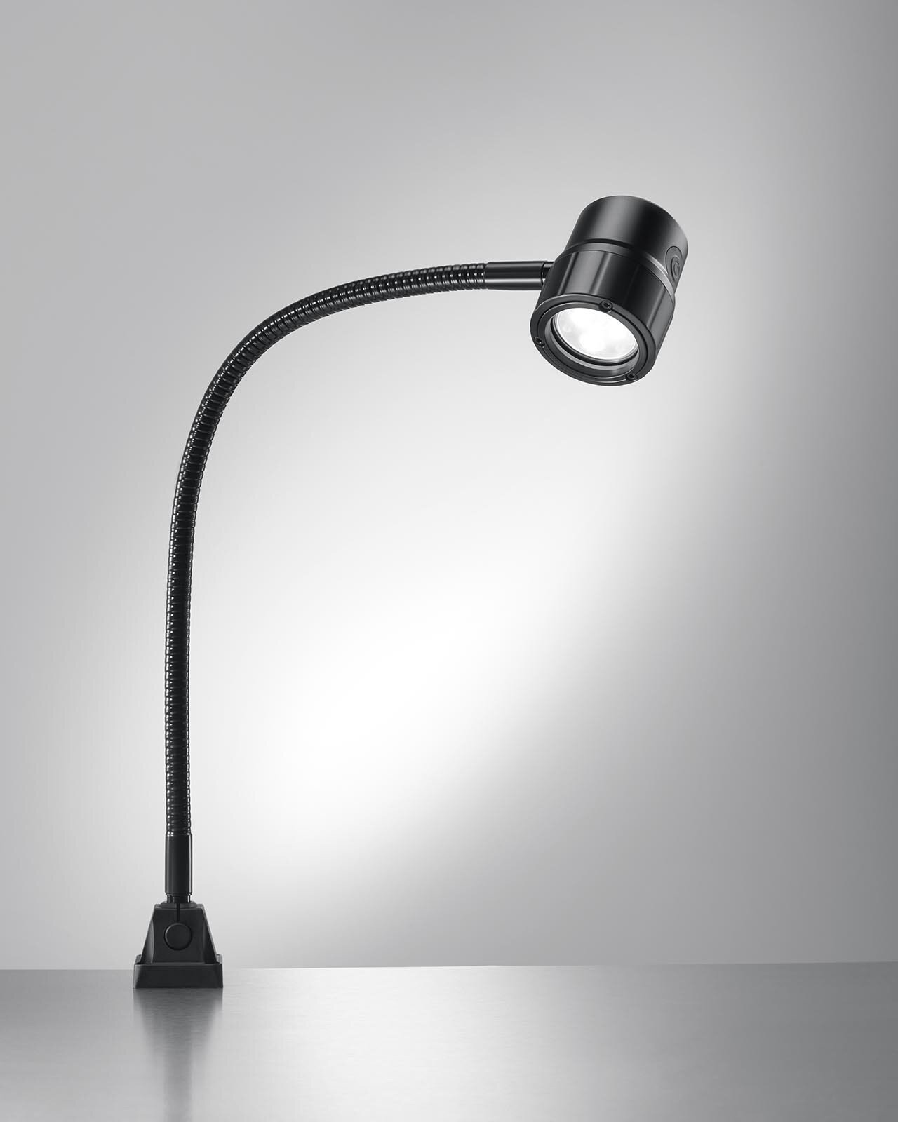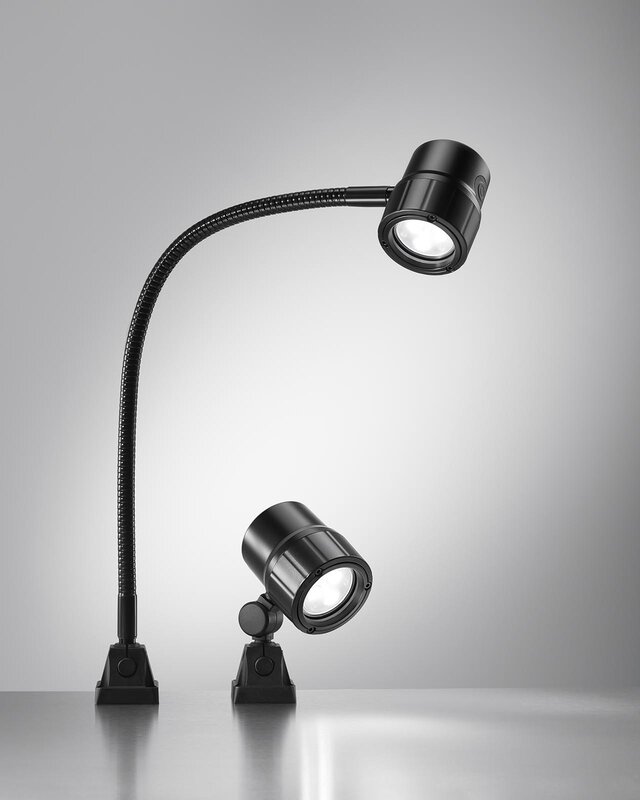Il faretto SL di Waldmann ha una lunga durata grazie alla tecnologia LED ad alta potenza che non richiede manutenzione. Il robusto alloggiamento in alluminio garantisce di resistere senza problemi anche alle condizioni ambientali più difficili delle macchine. L'SL è disponibile sia in versione con testa girevole che con tubo flessibile.