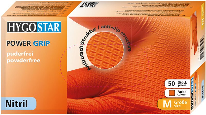 Hygostar nitril handschoen POWER GRIP, oranje, maat M, poedervrij