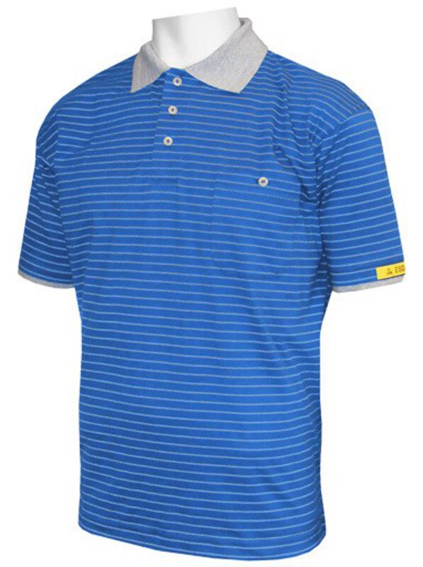 ESD polo CONDUCTEX heren, korte mouw, blauw/grijs borstzakje, XS