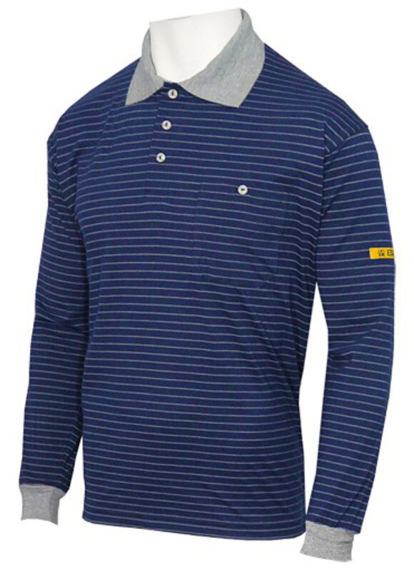ESD polo CONDUCTEX heren, lange mouwen, donkerblauw/grijs, borstzak, S