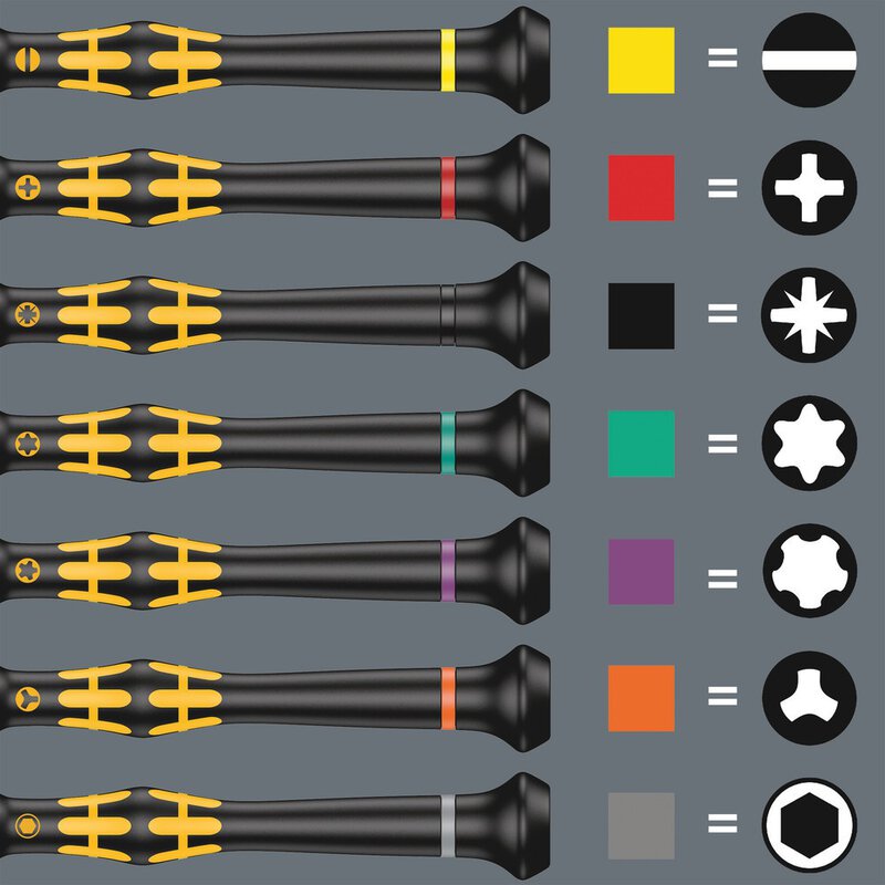 Elektrostatisch beschermde microschroevendraaier. Betrouwbare bescherming tegen elektrostatische energie en bijbehorende schade. Bliksemsnel draaien is mogelijk door de hand op de roterende dop te laten rusten en dankzij de snelle draaizone onder de roterende dop. Geen tijdrovend opnieuw draaien meer. Krachtzone met geïntegreerde zachte zones zorgt voor de overdracht van hoge los- en vastdraaimomenten. Precisiezone voor de juiste draaihoek bij afstelwerkzaamheden. De Black Point punt biedt een precieze pasvorm en geoptimaliseerde corrosiebescherming. Take it easy gereedschapzoeker met kleurcodering volgens profiel en maataanduiding - om het benodigde gereedschap snel en eenvoudig te vinden.