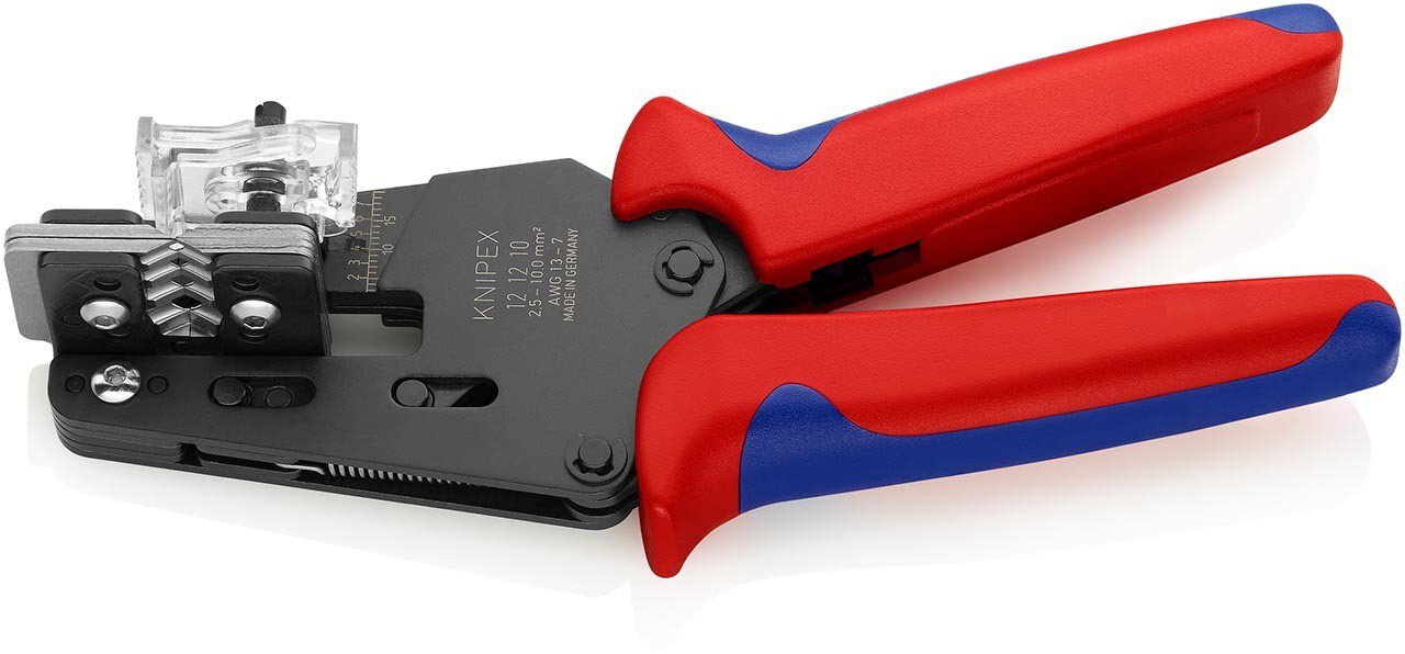 De precisiedraadstripper met gegoten messen, gepolijst, AWG 13 - 7, 195 mm van KNIPEX overtuigt door zijn precieze verwerking en hoge functionaliteit. Dit gereedschap is ontwikkeld voor professionele toepassingen en maakt moeiteloos en schoon strippen van de meest uiteenlopende geleiders en strengen mogelijk. Vormvast strippen, zelfs van moeilijk te verwijderen isolatiematerialen van PTFE, siliconen, Radox®, Kapton® en rubber Ook meerlaags Een tweede paar messen houdt de resterende isolatie betrouwbaar op zijn plaats Verwisselbare gegoten messen precies afgestemd op de betreffende aderdoorsnede Met instelbare lengteaanslag voor identieke striplengten bij seriewerk Het robuuste ontwerp en de ergonomische vorm zorgen voor een comfortabele bediening en een lange levensduur. Een onmisbaar gereedschap voor elektriciens, technici en iedereen die nauwkeurig en efficiënt wil werken op het gebied van kabelverwerking.