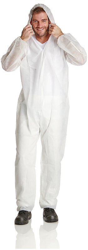 PP overall, 40g/sqm, met capuchon, ademend, wit, maat XL