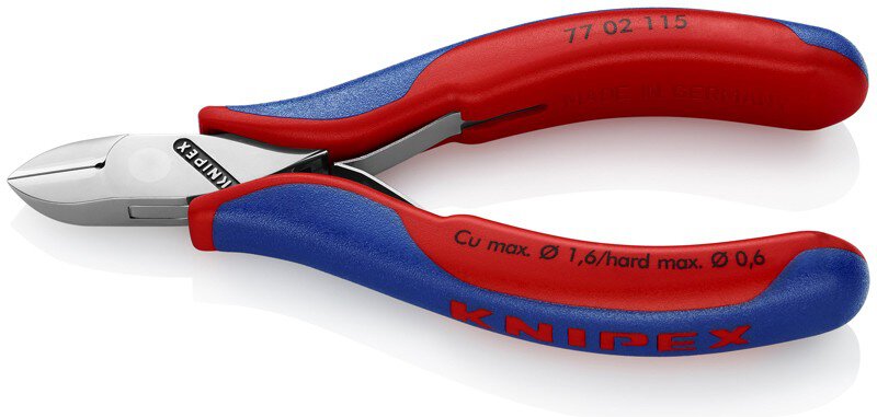 Voor fijn snijwerk, bijv. in de elektronica en fijnmechanica. Stress-geoptimaliseerd ontwerp voor een directer werkgevoel. Stevig, doosverbinding zonder speling. Wrijvingsarme dubbele veer voor soepel en gelijkmatig openen. De polish of spiegelpolish in combinatie met een fijne oliefilm zorgt voor een goede roestbescherming - geen storingen in het circuit door afbladderende chroomdelen. Snijkanten extra lasergehard, hardheid van de snijkanten minstens 60 HRC. Slanke, tot de kop van de tang verhoogde omhulsels zorgen voor een veilige en comfortabele geleiding, zelfs tussen duim en wijsvinger. ronde kop, met klein facet. Snijkanthardheid ca. 60 HRC. - Vorm: 0 - snijwaarden middelharde draad (diameter): Ø 1,2mm - snijwaarden harde draad (diameter): Ø 0,6mm - Snijwaarden zachte draad (diameter): Ø 0,3 - 1,6mm - Beklengte (B): 14mm - Bekdikte (bij scharnier) (D): 7,5mm - Bekbreedte (A): 11mm