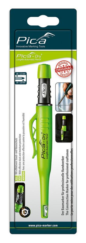 • De speciale grafietstift maakt markeren mogelijk op bijna alle materiaaloppervlakken, zowel droog als vochtig, glad als ruw, stoffig of olieachtig.