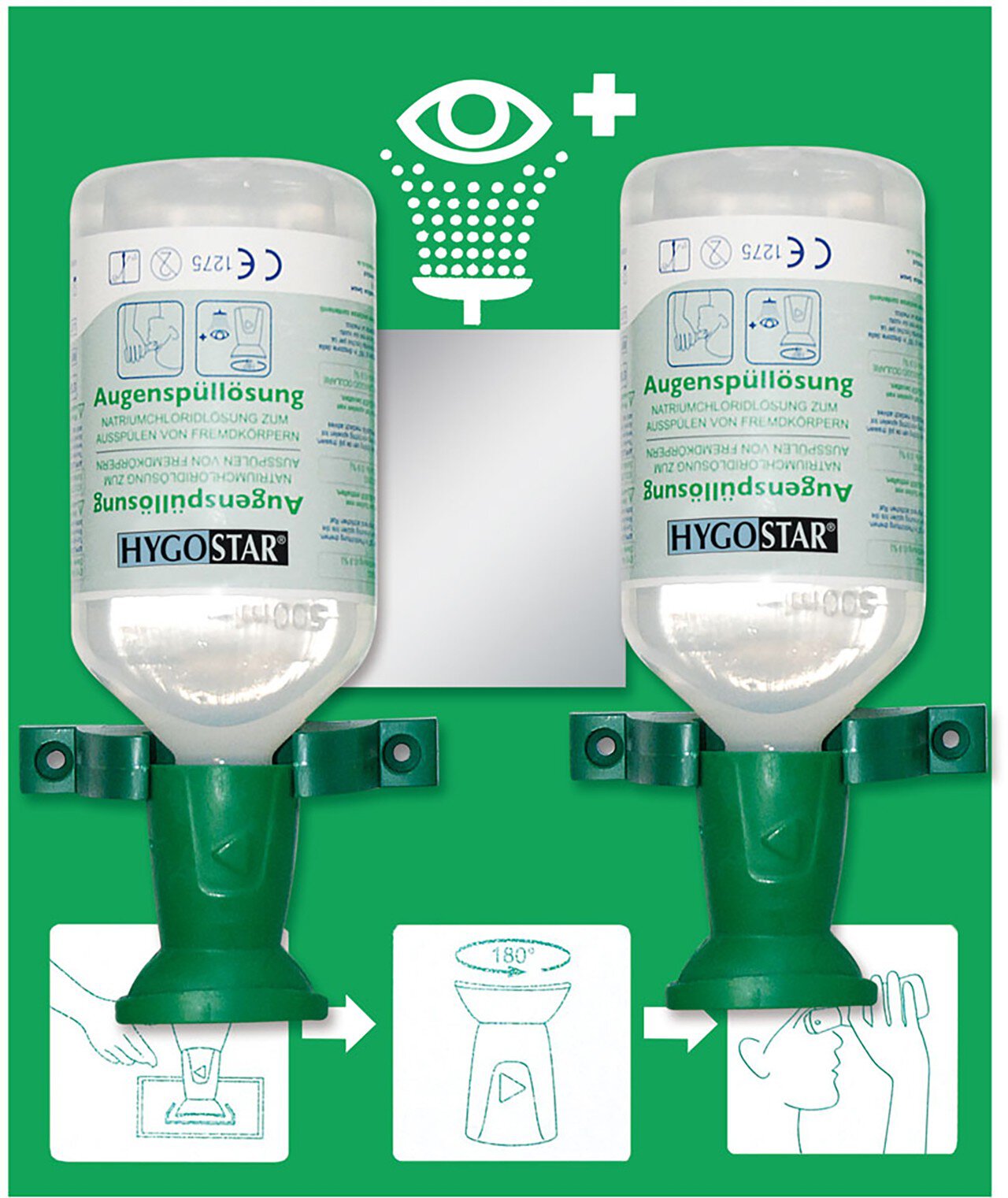 • Butelka do płukania oczu (500 ml, roztwór chlorku sodu, 0,9%)