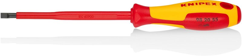 Wkrętak do wkrętów z rowkiem: Ergonomicznie zoptymalizowana dwukomponentowa rękojeść zapewniająca niemęczące i przyjazne dla dłoni przenoszenie siły. Kształt uchwytu zapobiegający przewracaniu się. - Długość ostrza: 125mm - Długość nieizolowanego ostrza: 15mm - Długość rękojeści: 107mm - Szerokość ostrza: 5,5mm - Grubość ostrza: 1,0mm - Testowane w VDE: Tak