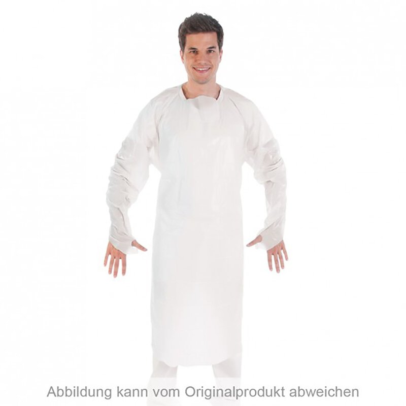 Fartuch egzaminacyjny, CPE, 115cm, z otworem na kciuk, biały, rozmiar XL