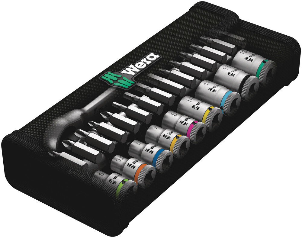 Niewiarygodnie kompaktowy zestaw dla wielu narzędzi na małej przestrzeni. Całkowicie nowy wygląd zestawu grzechotek dzięki innowacyjnym pudełkom tekstylnym o bardzo wysokiej wytrzymałości i trwałości. Możliwość ustawienia w pozycji pionowej w celu przejrzystego przechowywania na półce warsztatowej. Dodatkowa ochrona powierzchni dzięki tekstylnemu materiałowi zewnętrznemu. Niewielka waga i objętość ułatwiająca mobilność Dzięki wyszukiwarce narzędzi Take it easy: kodowanie kolorami według rozmiaru.