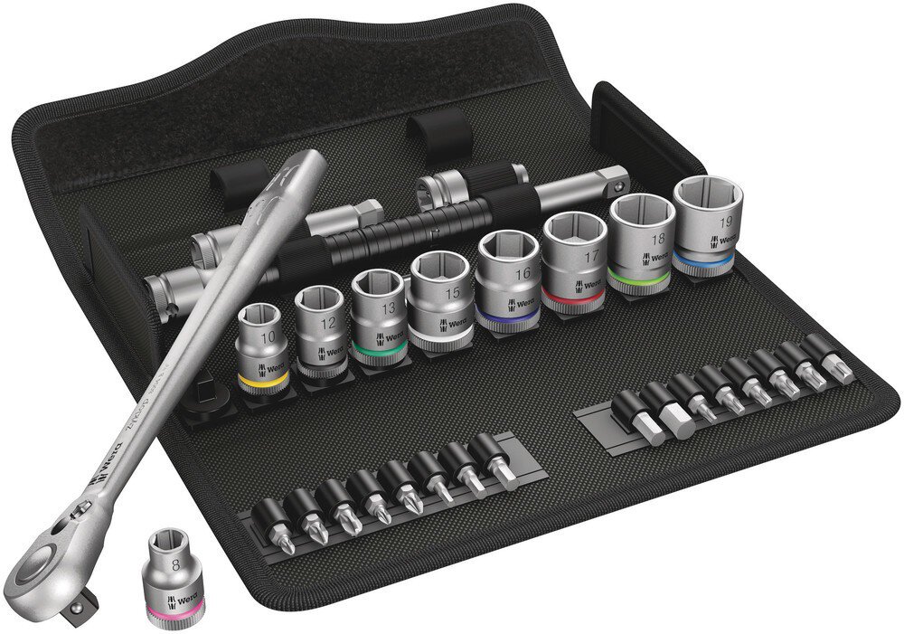 Niewiarygodnie kompaktowy zestaw dla wielu narzędzi na małej przestrzeni. Całkowicie nowy wygląd zestawu grzechotek dzięki innowacyjnym pudełkom tekstylnym o bardzo wysokiej wytrzymałości i trwałości. Możliwość ustawienia w pozycji pionowej w celu przejrzystego przechowywania na półce warsztatowej. Dodatkowa ochrona powierzchni dzięki tekstylnemu materiałowi zewnętrznemu. Niewielka waga i objętość ułatwiająca mobilność Dzięki wyszukiwarce narzędzi Take it easy: kodowanie kolorami według rozmiaru.