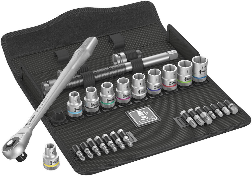 Niezwykle kompaktowy zestaw zapewniający dużą liczbę narzędzi na małej przestrzeni. Całkowicie nowy wygląd zestawu grzechotek dzięki innowacyjnym pudełkom tekstylnym o bardzo wysokiej wytrzymałości i trwałości. Możliwość ustawienia w pozycji pionowej w celu przejrzystego przechowywania na półce warsztatowej. Dodatkowa ochrona powierzchni dzięki tekstylnemu materiałowi zewnętrznemu. Niewielka waga i objętość ułatwiająca mobilność Dzięki wyszukiwarce narzędzi Take it easy: kodowanie kolorami według rozmiaru.