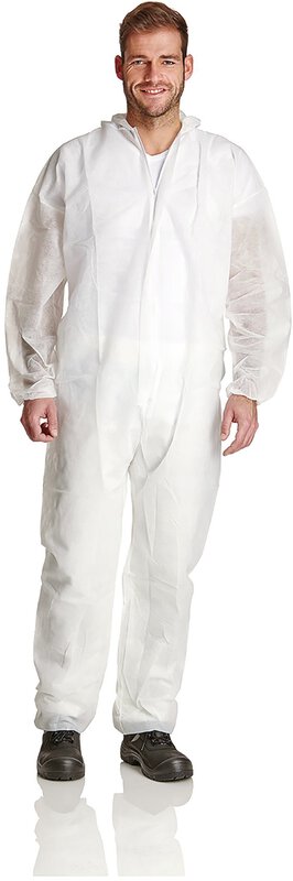 Kombinezon z PP, 50g/sqm, z kapturem, oddychający, biały, rozmiar M