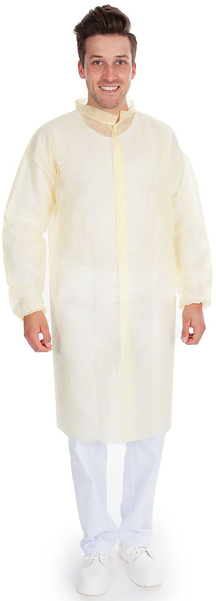 Fartuch jednorazowy PP firmy Hygonorm Fartuchy jednorazowe wykonane z PP doskonale nadają się jako fartuchy dla odwiedzających. Ponieważ fartuchy PP szczególnie dobrze przepuszczają powietrze, są wygodne i niedrogie. Lekka jakość fartucha oraz zapięcie na rzep z przodu sprawiają, że fartuch wizytowy jest niezwykle praktyczny. Jest on dostępny w bardzo dużych rozmiarach i może być łatwo noszony na normalnym ubraniu. Dzięki zapięciu na rzepy fartuch jednorazowy można super szybko założyć i zdjąć. Fartuchy dla gości są szczególnie higieniczne i niezawodnie chronią przed zanieczyszczeniami. Idealnie nadają się dla gości w kuchni, przemyśle spożywczym, przemyśle i szpitalu.