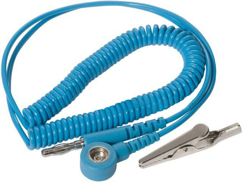 Kabel spiralny ESD, 1 MOhm, 2,4 m, wtyk bananowy 7 mm DK