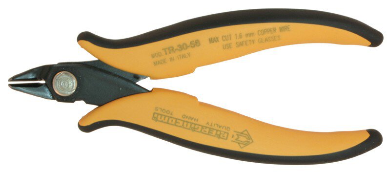 Szczypce tnące boczne z klipsem zabezpieczającym, spiczaste, bez skosu, Cu 0,81 mm, 132 mm