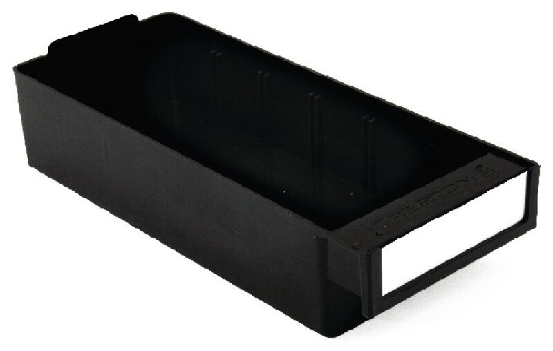 Czarne szuflady ESD firmy Treston są wykonane z półprzewodzącego polistyrenu dla małych elementów.