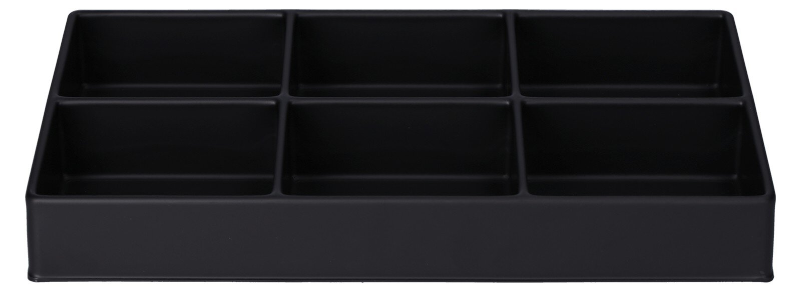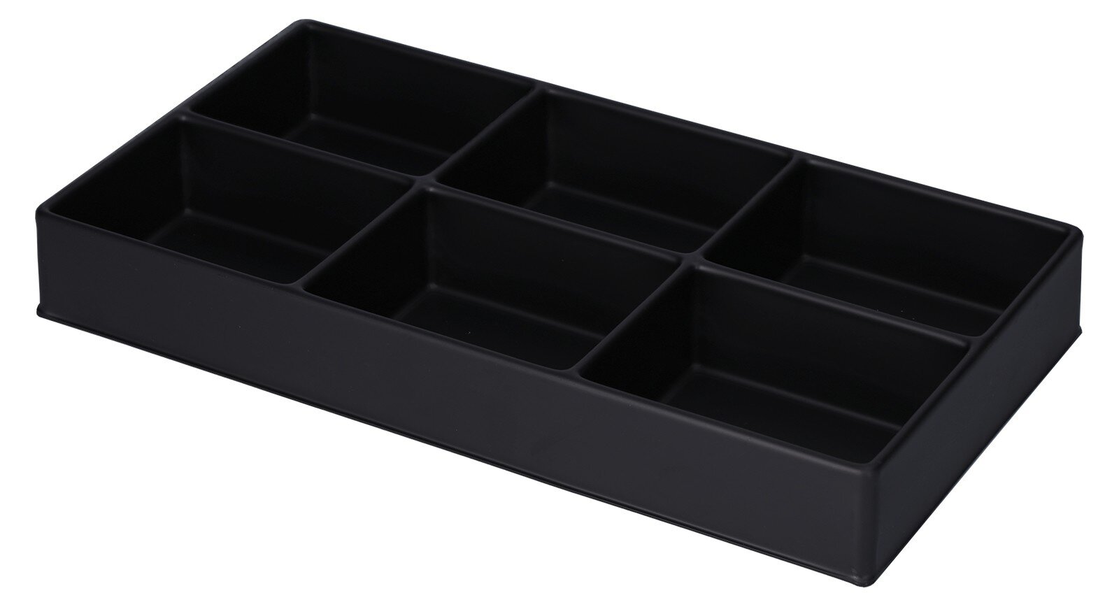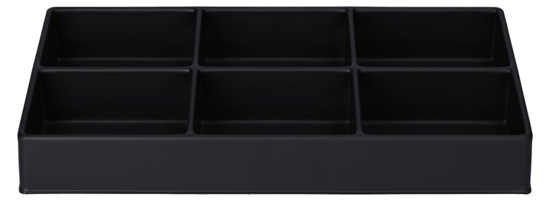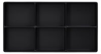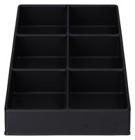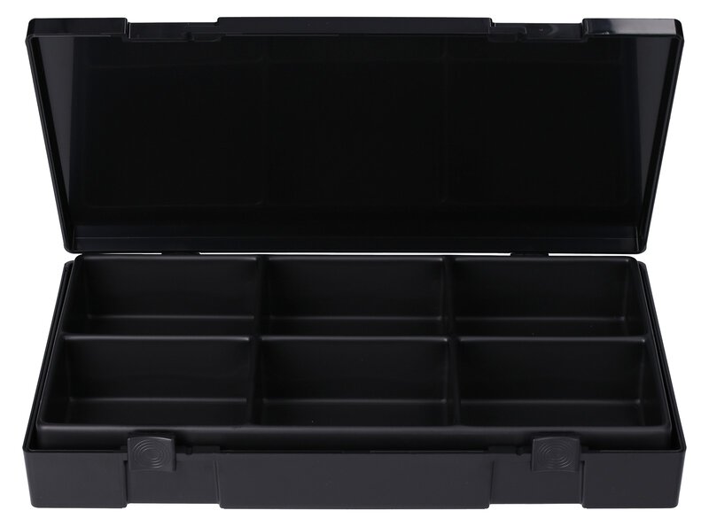 Wkładka jest dostępna w eleganckim czarnym kolorze i idealnie pasuje do skrzynek asortymentowych o wymiarach wewnętrznych 295 x 164 x 16 mm lub 295 x 164 x 38 mm. Posiada 6 przedziałów, każdy o wymiarach 71 x 90 mm, dzięki czemu oferuje wystarczającą ilość miejsca do przejrzystej organizacji komponentów.